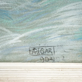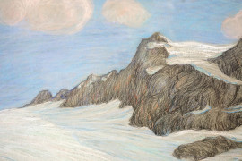 Paesaggio montano innevato, tecnica mista su carta, cm 58x42, firmato, in cornice