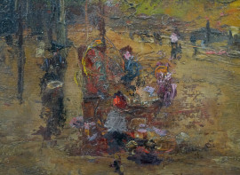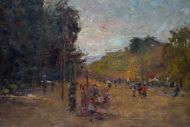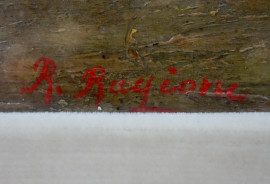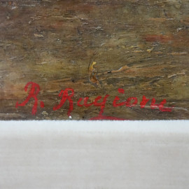 Parco con figure, olio su tavola, cm 34x45, firmato Ragione, entro cornice.