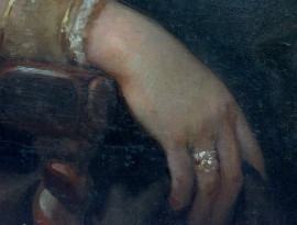 Ritratto di donna, olio su tela, cm 78,5x59, (lievi difetti)