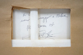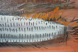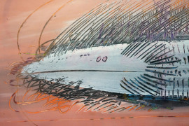 Pesce - Astratto, tecnica mista su carta, cm 18,5x48, dedica e firma a tergo, entro cornice.