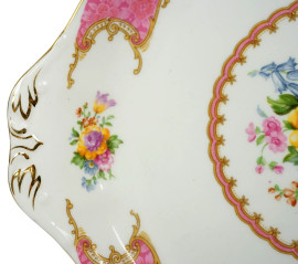 Piccolo vassoio in porcellana policroma con decori floreali, Royal Albert, XX secolo, serie "Lady Carlyle", diametro cm 26.5