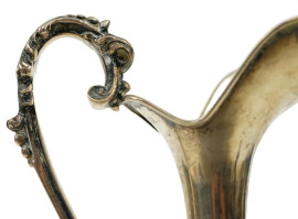 Piccolo versatoio in argento 800, cm h 22, seconda metà XX secolo, peso gr.340, (ammaccatura).
