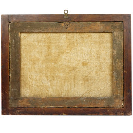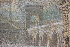Pittore del XIX secolo, Capriccio di archi ed architetture, olio su tela, cm 35x46, entro cornice, (difetti)