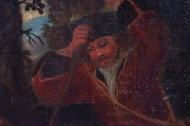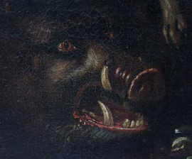 Pittore del XVII secolo, Caccia al cinghiale, olio su tela, cm 89x118