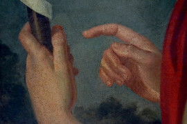 Pittore del XVIII secolo, San Giovanni Battista, olio su tela, cm 72,5x59, entro cornice, (difetti)