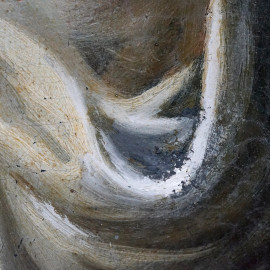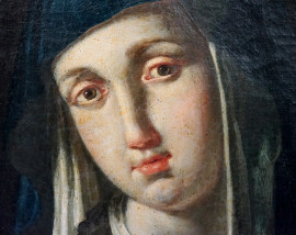 Pittore del XVIII secolo, Vergine Maria, olio su tela, cm 39x30, (difetti sulla tela, restauri).
