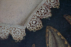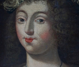 Pittore della fine del XVII secolo, Ritratto di nobildonna, olio su tela, cm 57x46, entro cornice, (difetti)