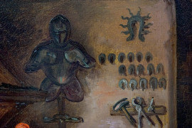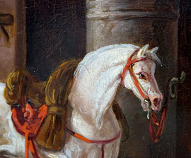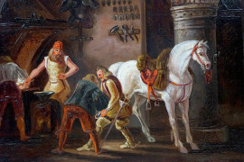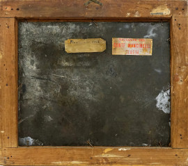Pittore europeo del XIX secolo, Dal Maniscalco, olio su rame, cm 25,2x31, in cornice.