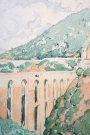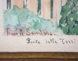 Ponte delle Torri, acquarello su carta, cm 18x14, firmato Francesco Raffaello Santoro, entro cornice.