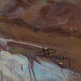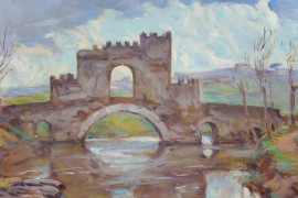 Ponte nomentano, olio su cartone, cm 31x28 circa, firmato A. Rossi, entro cornice, (lievi difetti).