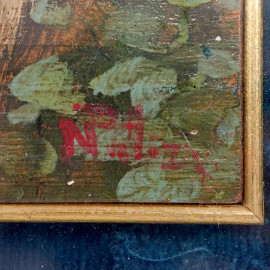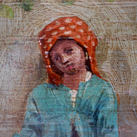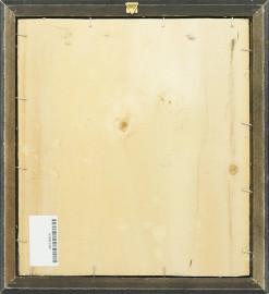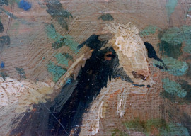 Popolana con capretta, olio su tavoletta, cm 15x15,5, firmato, entro cornice.
