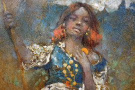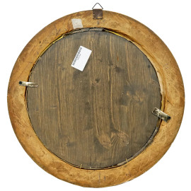 Popolana, tecnica mista su pergamena applicata su tavola ad assetto tondo, diam. cm 35, inizi XX secolo, entro cornice.