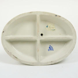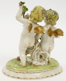 Puttini con grappoli d'uva, gruppo scultoreo in porcellana policroma, cm h 15,5x13, marcato N coronata sotto la base.