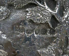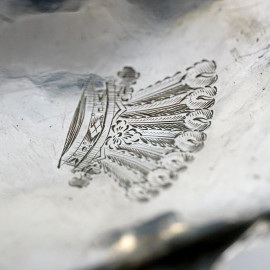 Raffinata caffettiera in argento riccamente sbalzato e cesellato, punzoni Londra, Giorgio III, 1816, argentiere Edward Farrell (1786-1861), cm h 22x26, peso lordo gr. 1193