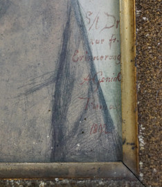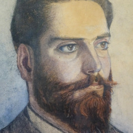 Ritratto di gentiluomo con barba, tecnica mista su carta applicata su tela, cm 30x22, dedica e firma in basso a destra, datato 1892, entro cornice.