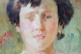 Ritratto di ragazza, olio su tela, cm 49x37, firmato e datato in alto a destra, (difetti)