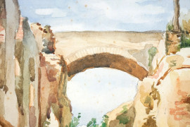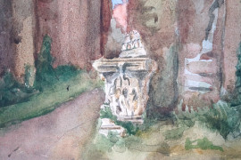 Rovine romane, acquarello su carta, cm 50x40, firmato, entro cornice