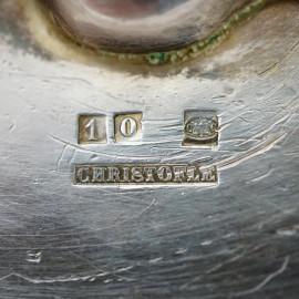 Salsiera in metallo argentato, cm 10x27,5x18, marcata Christofle, XIX secolo.