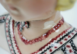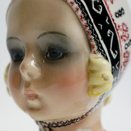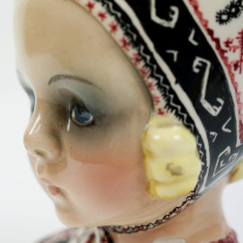 Sandro Vacchetti, Essevi, XX secolo, Fanciulla con cuffietta tradizionale, scultura in ceramica policroma, cm 15,5x13x6, (difetti).