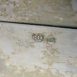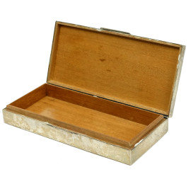 Scatola portasigari in argento con interno in legno, seconda metà del XX secolo, cm 3,5x20,8x10