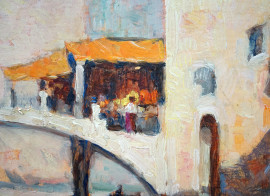Scorcio di Venezia, olio su cartone, cm 24,5x21,5, firmato Italico Brass, in cornice