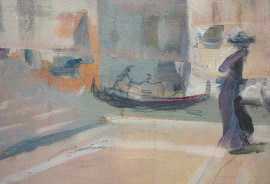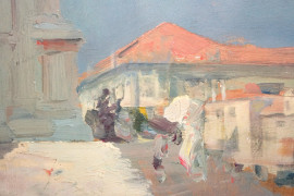 Scorcio sulla Chiesa di Santa Maria della Salute, olio su tavola, cm 34x27, XX secolo, entro cornice.