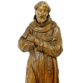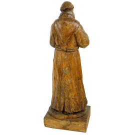 Scultore del XVII secolo, Frate, scultura in legno intagliato, cm h 61x17x20,5, (difetti e restauri)
