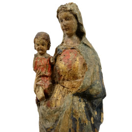 Scuola dell'Italia centrale, XIV secolo, Madonna col Bambino, cm h 53,5, (difetti e mancanze).