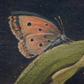 Scuola di Balthasar van der Ast (1593-1657), Tulipano con farfalle e mosca, olio su carta riportata su tela, cm 28x21, entro cornice.