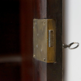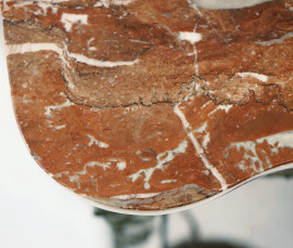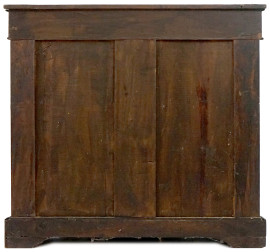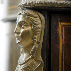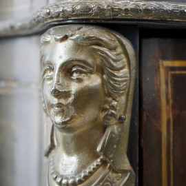 Servante Napoleone III, piano in marmo, fronte di linea sagomata con filettature e laterali scolpiti a foggia di busti di cariatidi in bronzo, cm h 105x112x43, (difetti).