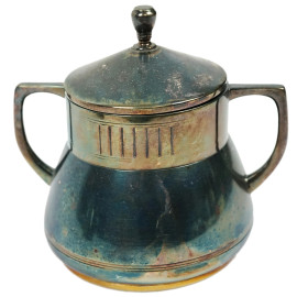 Servizio da caffè in metallo argentato, composto da: teiera, lattiera e zuccheriera, misure max cm 16x22, marchio sotto la base, XX secolo, (cucchiaino non pertinente, segni del tempo).
