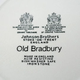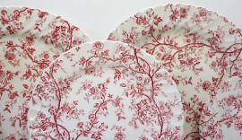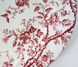 Servizio da tavola in porcellana bianca con decori rossi a rami fioriti, manifattura Johnson Brothers, Old Bradbury, Inghilterra, XX secolo, (pz. 110)