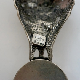 Composto da 22 forchette grandi, 12 coltelli grandi, 11 cucchiai grandi, 12 forchette con 12 coltelli da pesce, 12 forchettine, 13 coltelli piccoli, 12 cucchiaini da gelato, 10 cucchiaini, 12 cucchiaini da caffè, 3 posate da insalata, rotella, mestolo e due posate grandi da portata; presenti anche i seguenti pezzi non pertinenti: 1 coltellino da formaggio, 1 forchettina, 1 cucchiaino, ed 1 cucchiaino da zucchero.