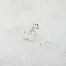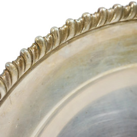 Sette vassoi in metallo argentato, di linea ovale e circolare con profili cesellati, misure max cm 60x37, marca sotto la base.