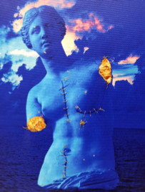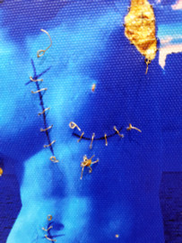Silvia Abbiezzi, Senza titolo, tecnica mista, stampa digitale e inserimenti polimaterici su tela, cm 40x30. Esposizioni; Arte per la Vita, 2023, Fondazione Museo Venanzo Crocetti - Roma