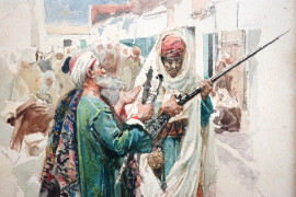 Arabi, acquarello su carta, cm 18x15,5, entro cornice.