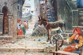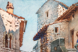 Ceccano, acquarello su carta, cm 17x12, entro cornice.
