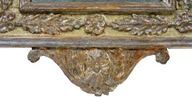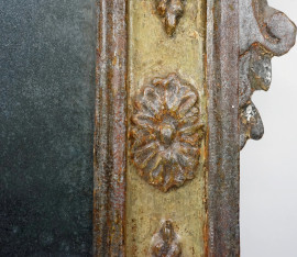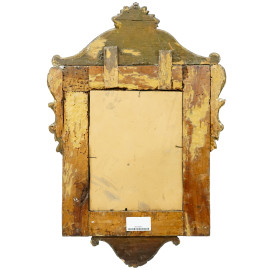 Specchiera in legno intagliato, laccato e argentato, XVIII secolo, cm 62x42, (difetti).