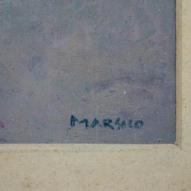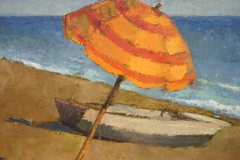 Spiaggia di Ostia, olio su tavoletta, cm 29x32, firmato, in cornice