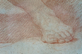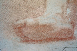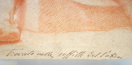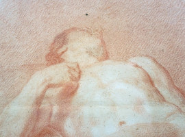 Studio di nudo maschile, sanguigna su carta filigranata con giglio, XVII secolo, cm 47x38, in cornice