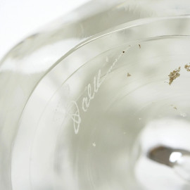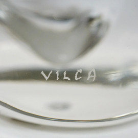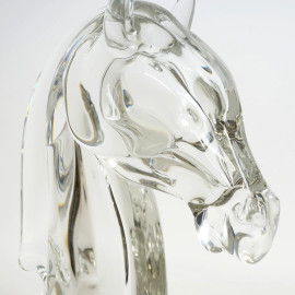 Testa di cavallo, scultura in vetro trasparente, cm h 32x21, Vilca, XX secolo, recante firma incisa sotto la base.