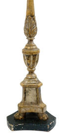 Torciere in legno intagliato e laccato, fusto poggiante su base triangolare e tre piedi leonini, XIX secolo, alt.cm 112, (difetti)
