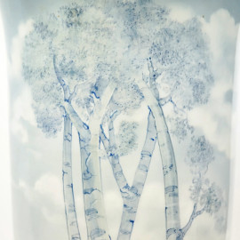 Vaso in porcellana dipinta in monocromia, decoro a tutto corpo raffigurante paesaggio, cm h 46,5, manifattura tre AAA Torino, XX secolo.