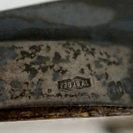 Vassoio a specchio di linea sagomata con profilo in argento 800, prima metà XX secolo, ingombro cm 60x46, (difetti)