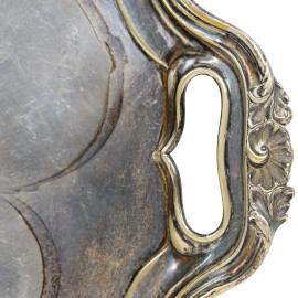 Vassoio di linea sagomata in Sheffield, doppia presa laterale, cm 57x30,5, XX secolo.