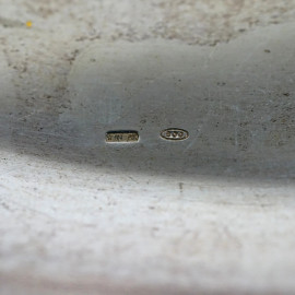 Vassoio ovale in argento, XX secolo, cm 47x34,5, peso gr. 1170, (lievi difetti)