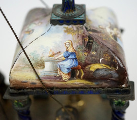 Il ponte è animato da sette miniature di marinai, sui quali si individuano i punzoni dell'argentiere. Il ponte di poppa è coperto da un baldacchino quadripartito con figure femminili allegoriche.