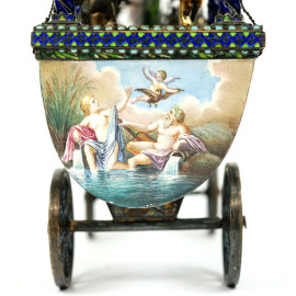Veliero in argento e smalti policromi, Austria, fine XIX secolo, cm h 36x83,8x8,3, peso gr. 1499, (difetti).