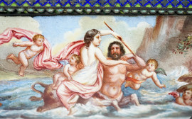 Lo scafo è esternamente decorato con scene mitologiche che si sviluppano tutt'intorno e raffigurano, partendo dal lato destro, il "Mito di Amimone", il "Ratto di Ganimede" e la "Ninfa col Centauro".  All'interno, la decorazione imita un acquario con pesci e molluschi di gusto naturalistico di derivazione ellenistica.