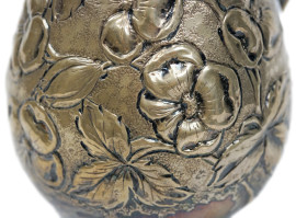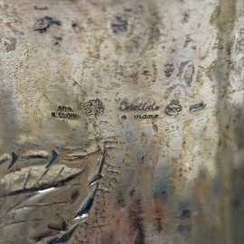 Versatoio in argento con decori cesellati a mano e a sbalzo sul corpo, cm h 20x22, punzone Argenteria "Il Leone", seconda metà XX secolo, peso gr. 610.